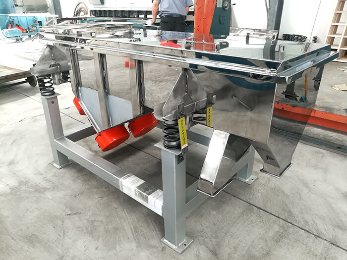 首先,我們對直線振動篩的工作原理進行闡述:直線振動篩是利用振動電機激振作為振動源,使物料在篩網上被拋起,同時向前作直線運動,物料從給料機均勻地進入直線振動篩的進料口,通過多層篩網產生數種規格的篩上物、篩下物、分別從各自的出口排出。具有低能耗、產量高、結構簡單、易維修、全封閉結構,無粉塵溢散,自動排料,非常適合于在生產工藝的流水線作業。