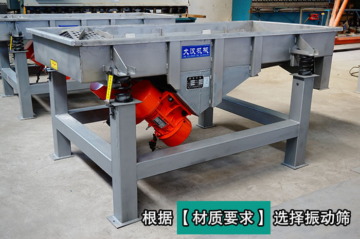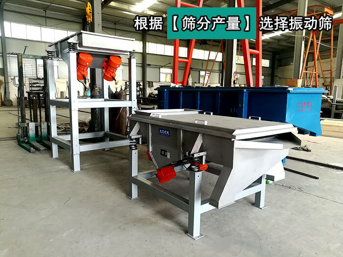 產(chǎn)量低時(shí),可選用小型號(hào)的直線振動(dòng)篩,如;產(chǎn)量高時(shí),可選用大型號(hào)的直線振動(dòng)篩,如電機(jī)功率也需要根據(jù)直線振動(dòng)篩產(chǎn)量大小來(lái)選擇合適的型號(hào)。