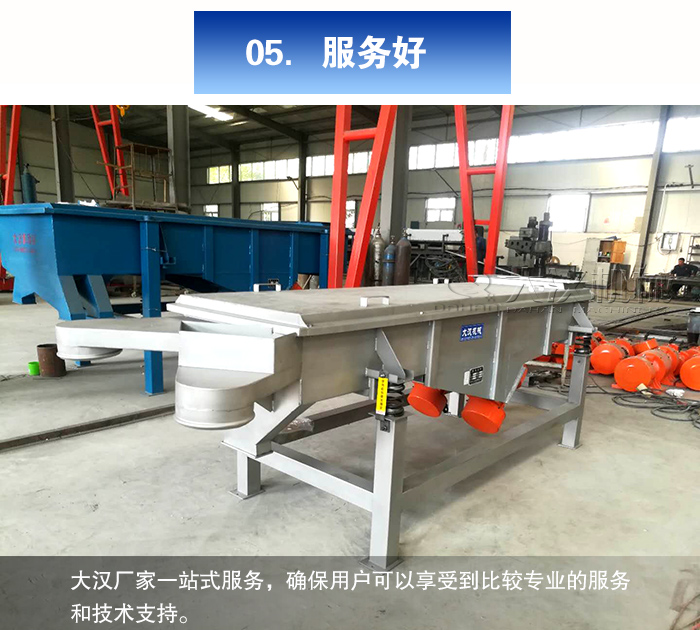大漢多層直線振動(dòng)篩廠家在選材上精益求精,保證每次進(jìn)廠的原材料及相關(guān)材料都是進(jìn)行質(zhì)量檢測(cè)合格之后才使用的,其他廠家的多層直線振動(dòng)篩板材厚度般在4mm-5mm之間,而我們的設(shè)備板材厚度直維持在10mm-12mm,設(shè)備安全性更高,運(yùn)行更加平穩(wěn)。