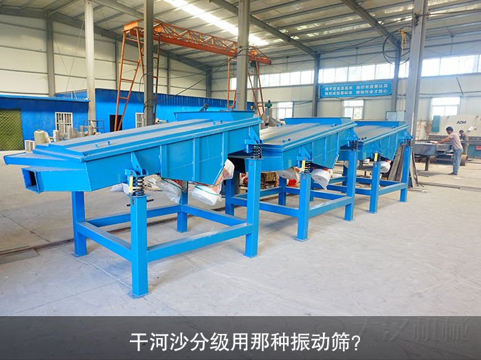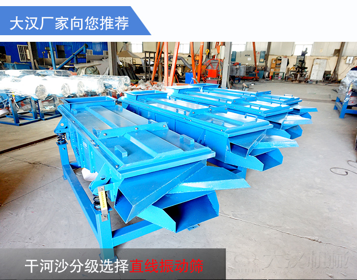干河沙雜質含量多,般需要使用振動篩對其進行分級除雜,那么干河沙分級選擇哪種振動篩合適呢?大漢廠家在這里為您推薦直線振動篩。