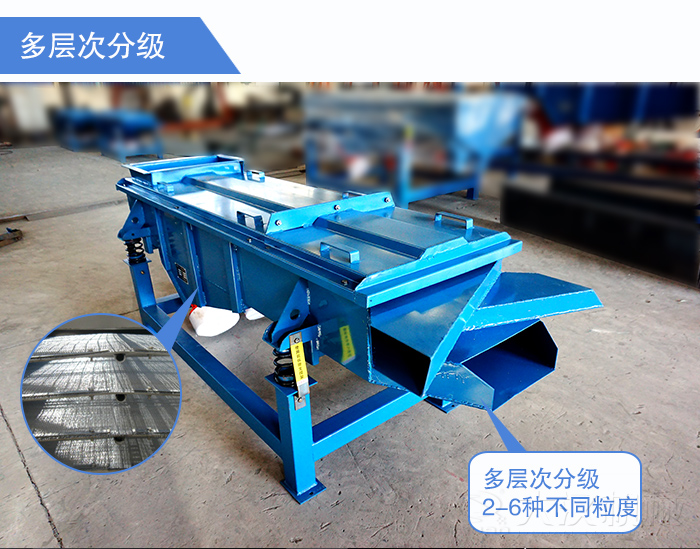 干河沙常規目數范圍有:4-8目、8-16目、10-20目、20-40目、40-70目、50-100目,所以在振動篩選型時需要考慮到設備的分級效果,大漢直線振動篩篩面層數可以達到5層,可以同時分選出2-6種不同粒度的干河沙,而且篩分精度在400目以內,對于篩分規格多的用戶來說,直線振動篩不失為種好的選擇。