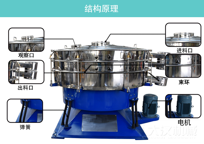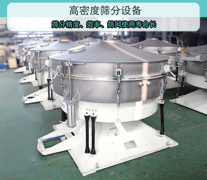 旋振篩,其原理是:瞬時運動為沿徑向的位移和以此位移為軸的圓周運動的合成(螺旋運動)。即可調節偏心距的激振器產生了非線性三維運動,物料也產生同樣的近似手動作業的運動,從而達到篩分之目的,再配合篩分附件可得到更加理想的篩分效果;適合于圓球狀、圓柱狀、片狀、乃至不規則形狀易堵網且需要精密篩分的物料。