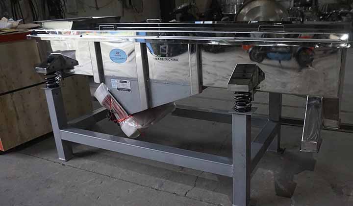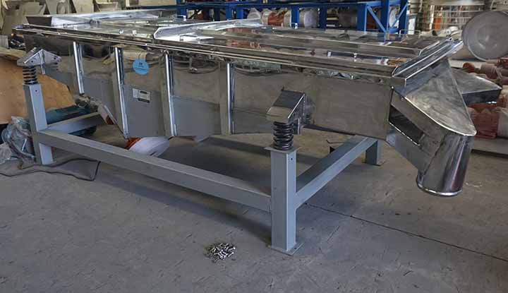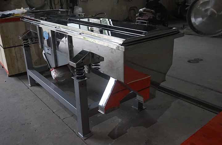 不銹鋼直線振動篩的篩面通常設計為5°-15° 的微小傾角,通過2-5 層不銹鋼篩網(wǎng)把濕的、易腐蝕的物料篩分為400目以內。