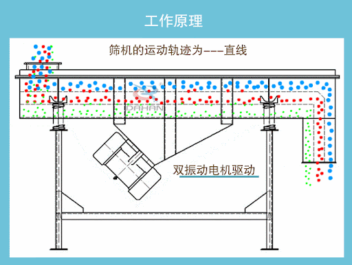 不銹鋼直線振動篩工作原理可分為動力來源、運動傳遞、物料分離三個環(huán)節(jié),雙軸振動電機為設備提供動力、篩體作直線往復振動進行動力傳遞,在直線振動和篩面傾角的共同作用下,會經(jīng)歷分層-透篩-分離的過程。