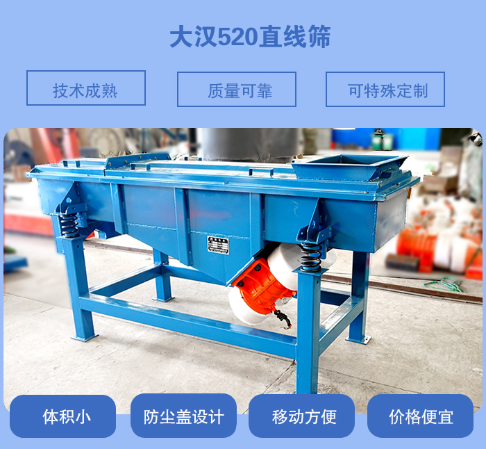 DZSF-520型,(寬)500mm×2000mm(長(zhǎng)),體積小移動(dòng)方便,價(jià)格便宜。520直線振動(dòng)篩按材質(zhì)分為304不銹鋼材質(zhì)和碳鋼材質(zhì);按層數(shù)分為520單層直線振動(dòng)篩,520兩層直線振動(dòng)篩,520三層直線振動(dòng)篩,520四層直線振動(dòng)篩,520五層直線振動(dòng)篩。可為客戶量身定做特殊要求的直線振動(dòng)篩。