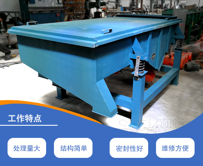 直線振動(dòng)篩利用振動(dòng)電機(jī)激振作為振動(dòng)源,使物料在篩網(wǎng)上被拋起,同時(shí)向前作直線運(yùn)動(dòng),物料從給料機(jī)均勻地進(jìn)入篩分機(jī)的進(jìn)料口,通過多層篩網(wǎng)產(chǎn)生數(shù)種規(guī)格的篩上物、篩下物、分別從各自的出口排出。具有耗能低、產(chǎn)量高、結(jié)構(gòu)簡(jiǎn)單、易維修、全封閉結(jié)構(gòu),無粉塵溢散,自動(dòng)排料,更適合于流水線作業(yè)。