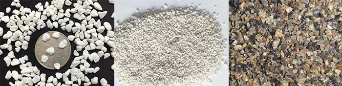 珍珠巖的粒 度在20~60目,60~80目珍珠巖按加工程度的不同,其產(chǎn)品可分為珍珠巖原礦、珍珠巖礦砂、膨脹珍珠巖及表面處理的膨脹珍珠巖四類。